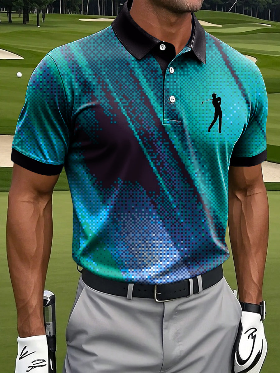 Ανδρικά Αφηρημένη γραμμή Μωσαϊκή Τέχνη Εκτύπωση περιστασιακή επιχείρηση Polo πουκάμιση