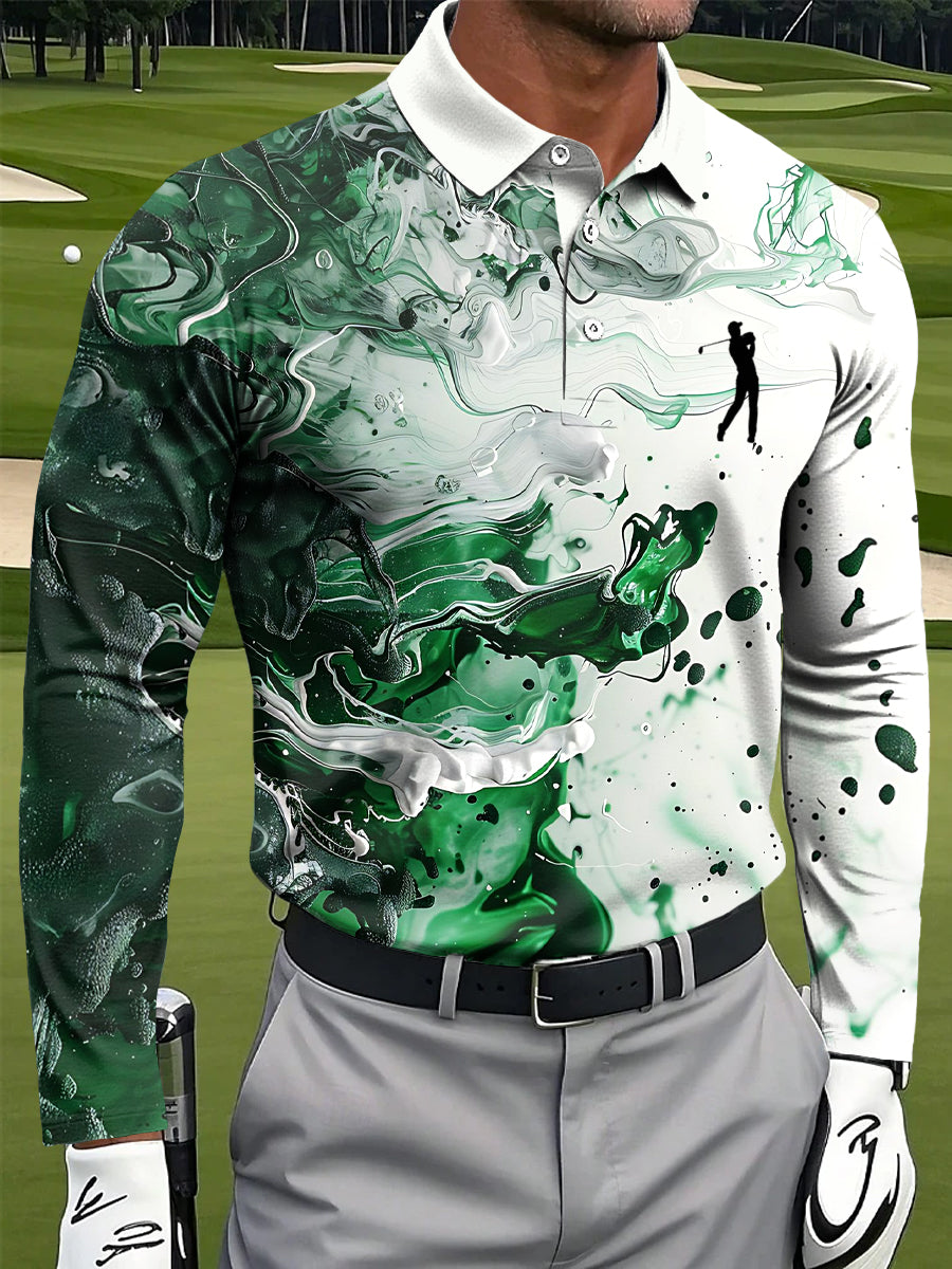 Ανδρικά Αφηρημένη Μαρμάρινη υφή τέχνη Εκτύπωση περιστασιακή επιχείρηση μακριά μανίκι Polo πουκάμιση