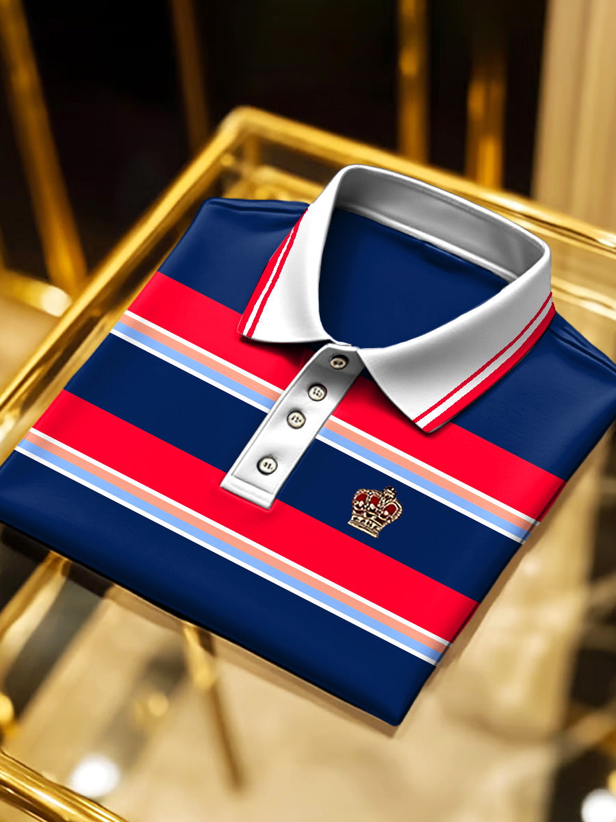 Ανδρικά κλασικά επιχειρήματα κοντομάνικο πουκάμισο Polo με πολύχρωμες ρίγες