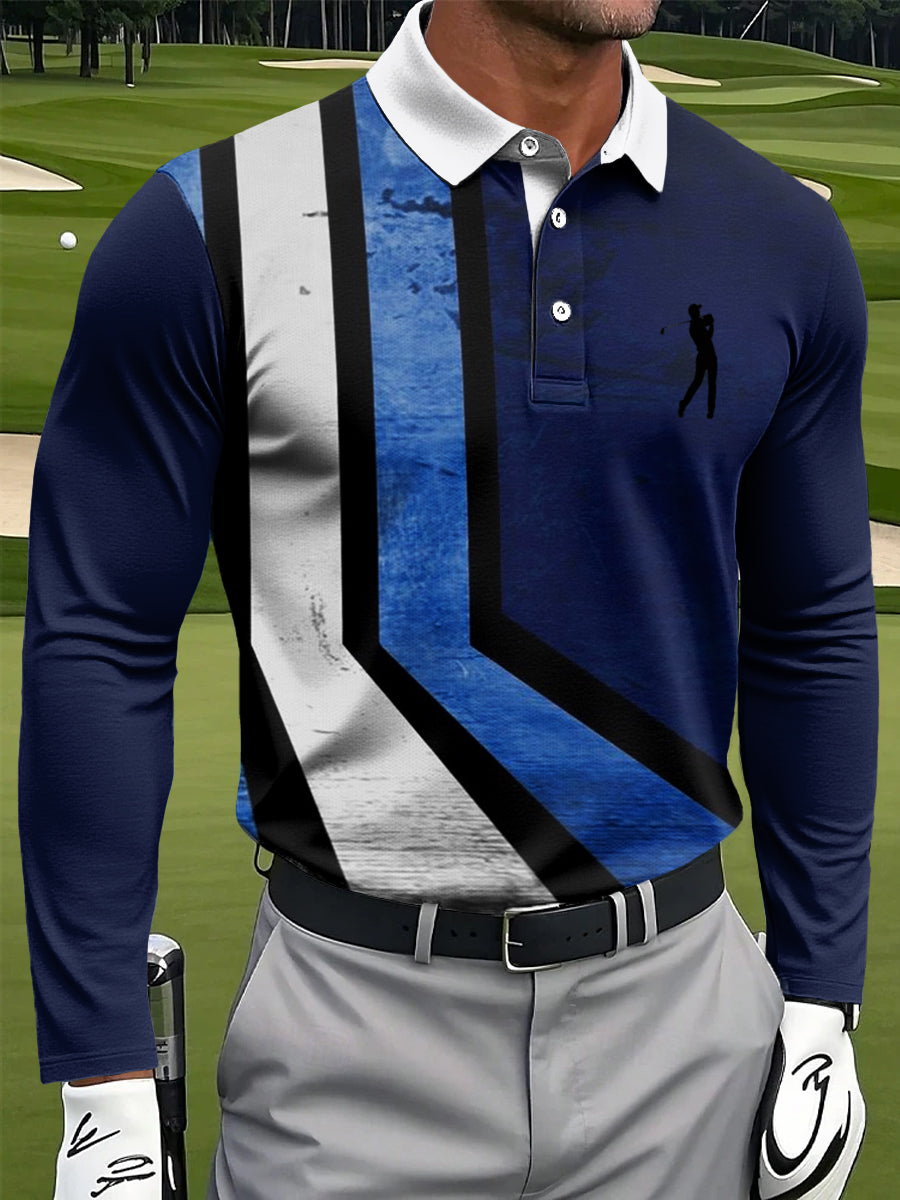 Ανδρικά Retro ακανόνιστα ριγέ εκτύπωση περιστασιακή επιχείρηση μακριά μανίκι Polo πουκάμιση