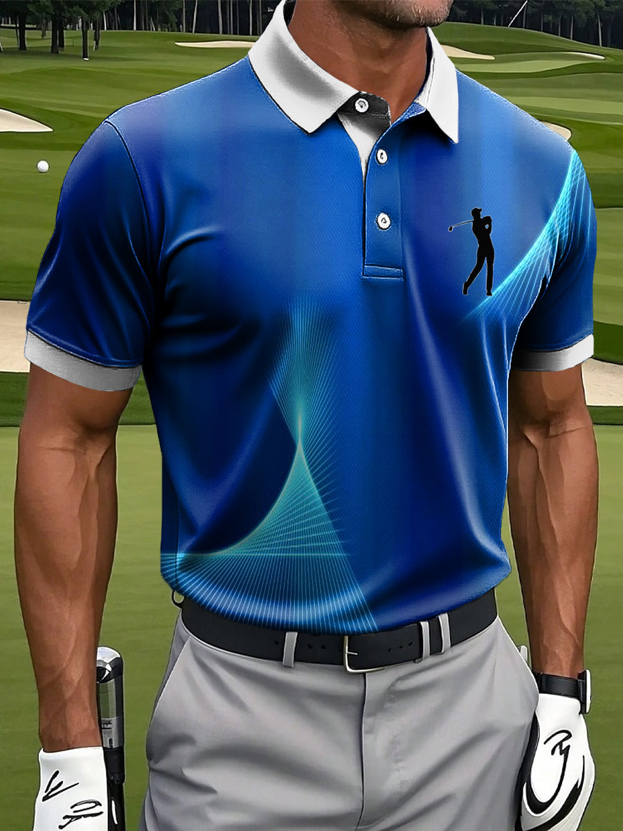 Ανδρικά Retro ακανόνιστη γραμμή υφή τέχνης εκτύπωση Casual Polo πουκάμιση