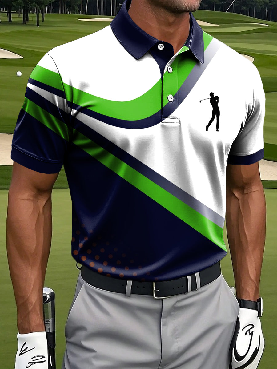 Ανδρικά Retro ακανόνιστη γραμμή χρώμα μπλοκ τέχνης Εκτύπωση περιστασιακή επιχείρηση Polo πουκάμιση