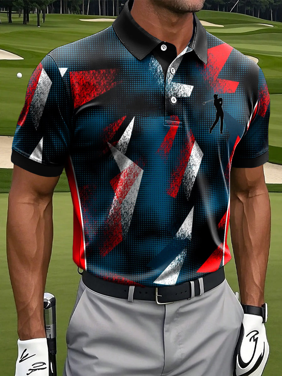 Ανδρικά Retro αφηρημένη θλιβερή γεωμετρική τέχνη Εκτύπωση περιστασιακή επιχείρηση Polo πουκάμιση