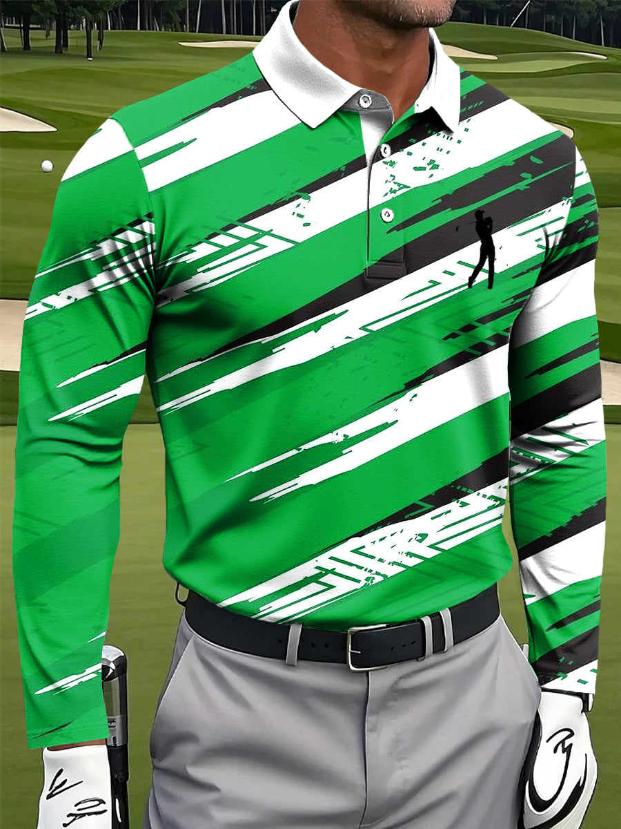 Ανδρικά Retro Αφηρημένη πολύχρωμα ριγού Εκτύπωση περιστασιακή επιχείρηση μακριά μανίκι Polo πουκάμιση