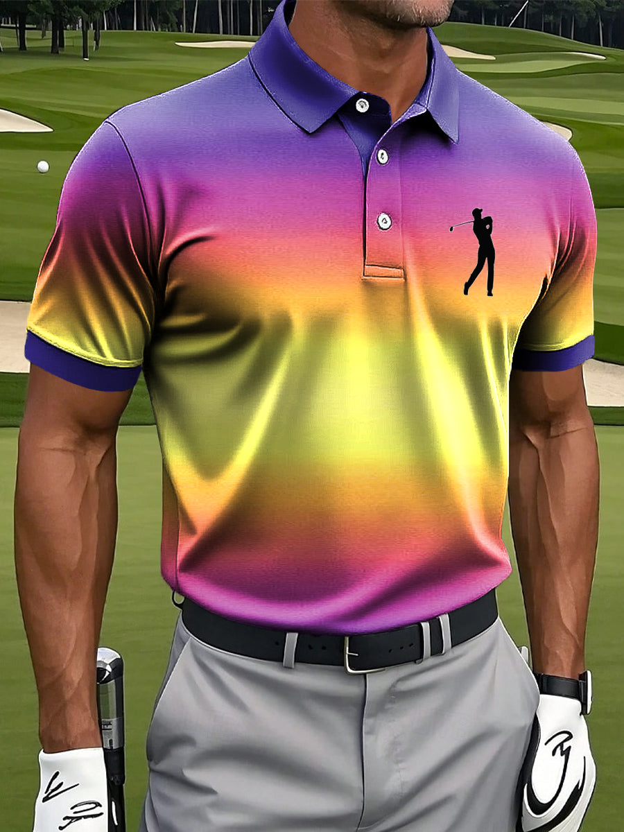 Ανδρικά Retro χρώμα διαβάθμιση εκτύπωση Casual Business Polo πουκάμιση