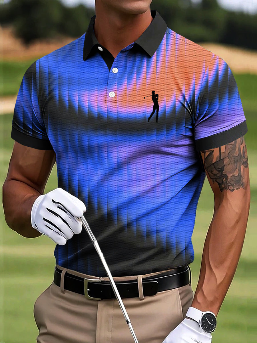 Ανδρικά Retro Gradient ριγέ τέχνη εκτύπωση Casual Polo πουκάμιση