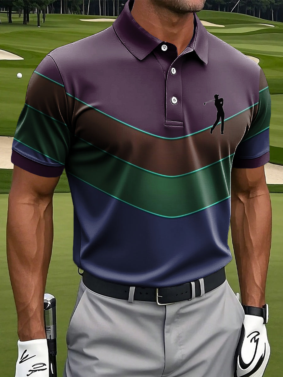 Ανδρικά Vintage-Style πολύχρωμα ριγέ τέχνη εκτύπωση Casual Polo πουκάμιση