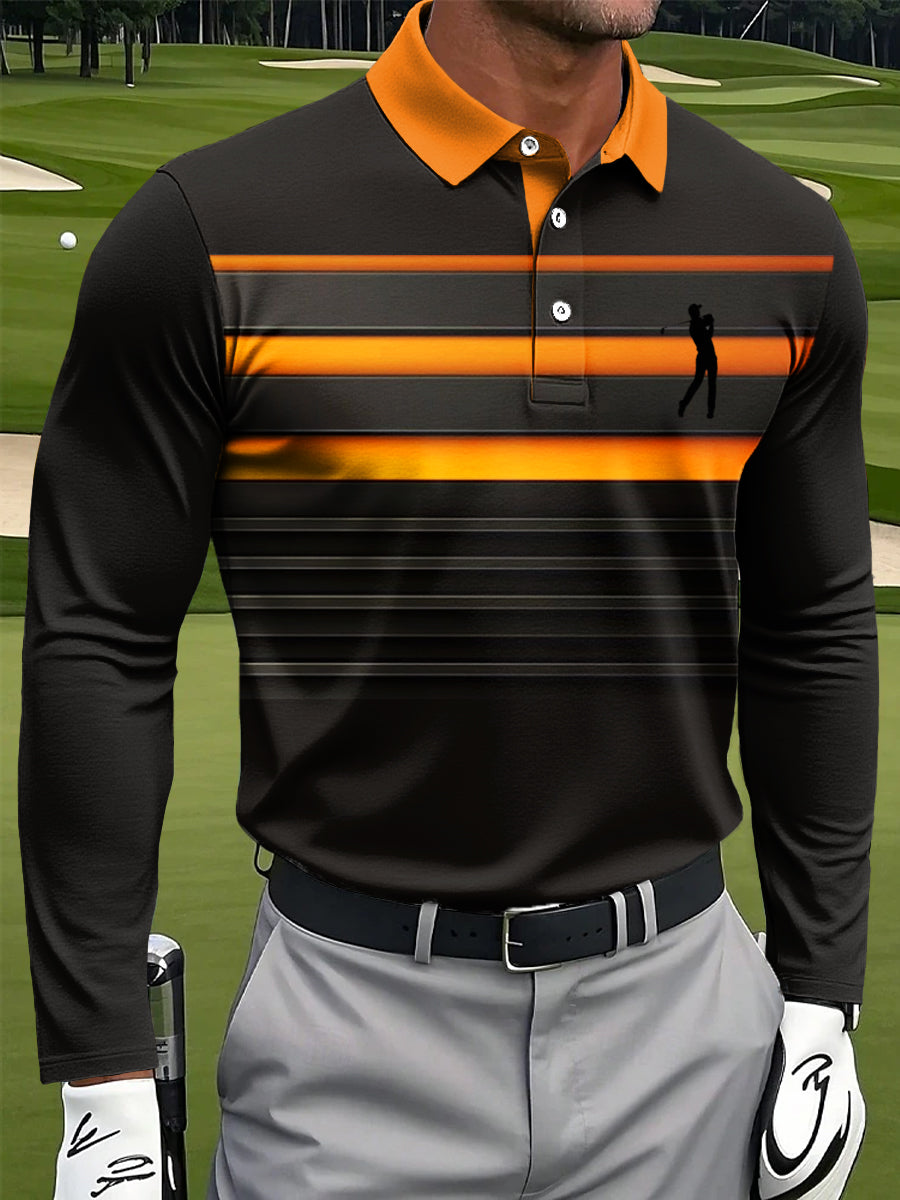 Ανδρική κλασική διαβάθμιση ριγέ τέχνη εκτύπωση περίπτωση μακριά μανίκι Polo πουκάμιση