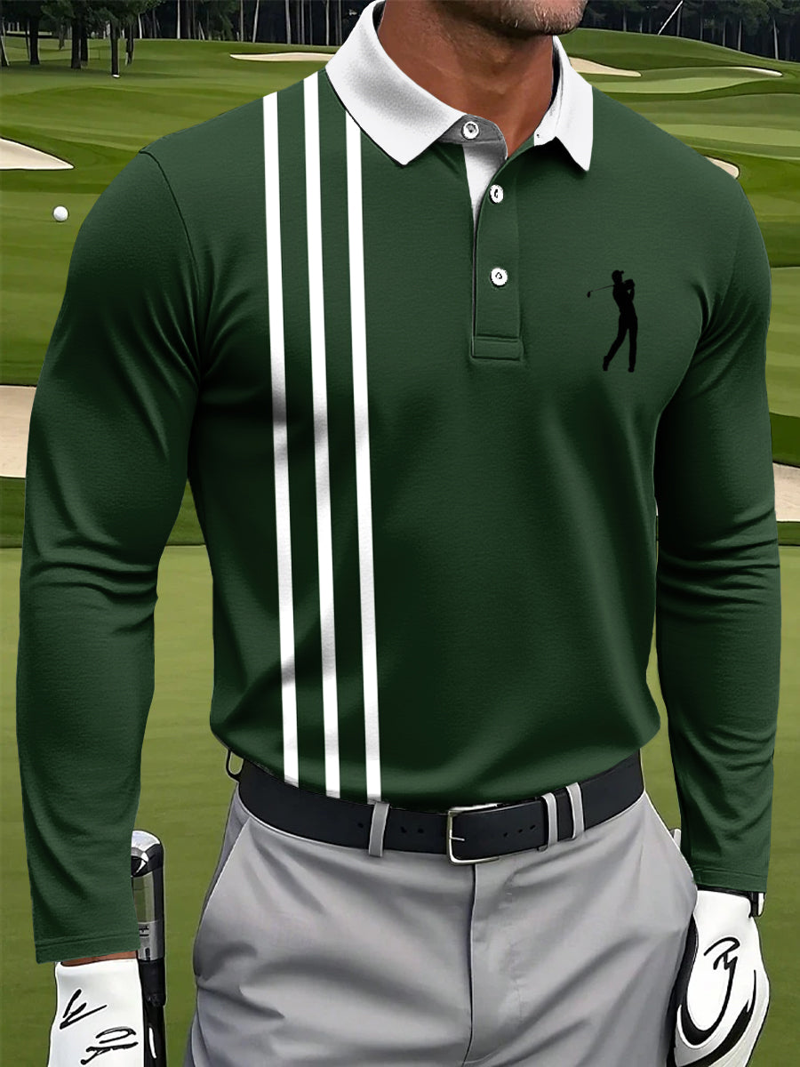 Ανδρική κλασική ριγέ τέχνη εκτύπωση περίπτωση μακριά μανίκι Polo πουκάμιση