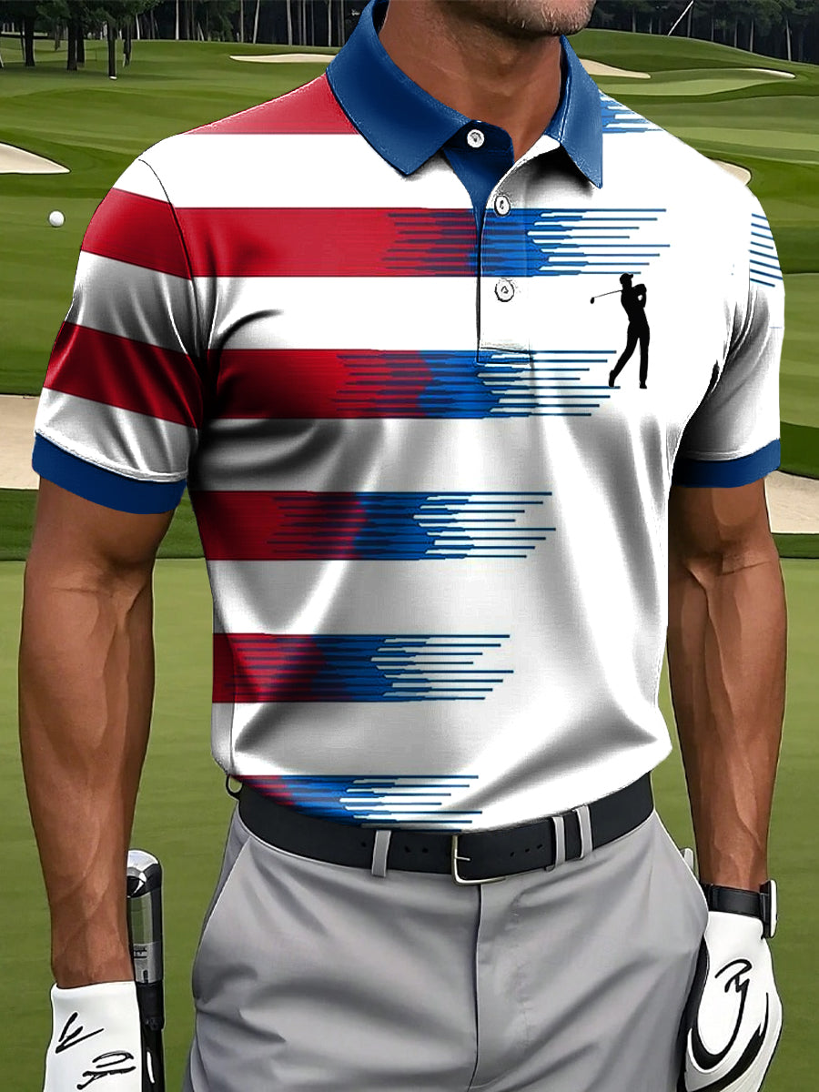 Ανδρική Retro Gradient χρώμα ριγέ καλλιτεχνική εκτύπωση περιστασιακή επιχείρηση Polo πουκάμιση