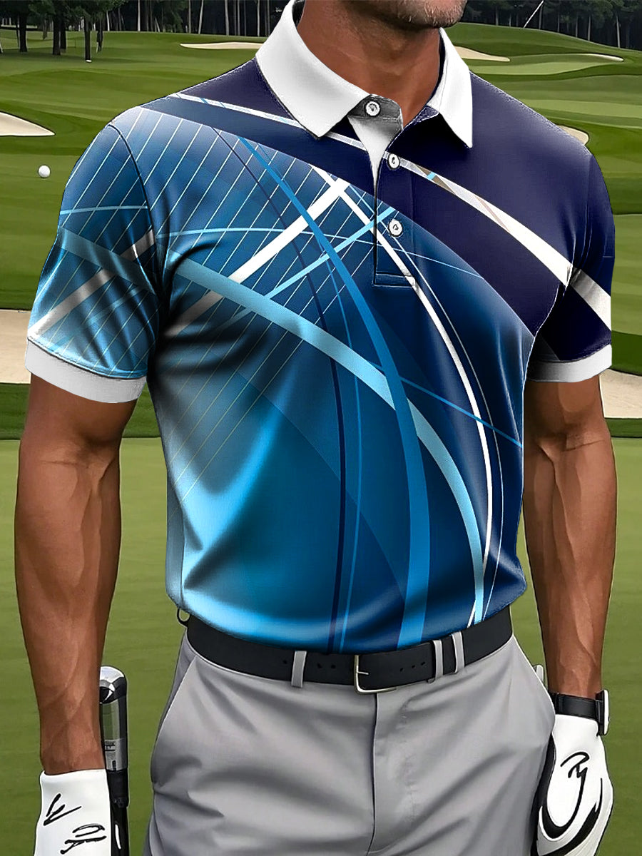 Ανδρών Retro πολύχρωμα αφηρημένη γραμμή τέχνης Εκτύπωση περιστασιακή επιχείρηση Polo πουκάμιση