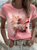 Γυναικείο μαργαριτάρι Rhinestone Τυπωμένα Καθαρό T-shirt