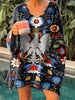 Γυναικείο vintage πουλόβερ με εθνοτικό floral μοτίβο και V λαιμόκοψη