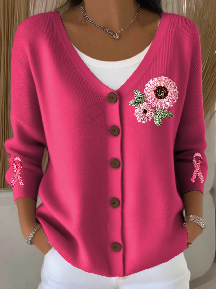 Γυναικείο Vintage λουλούδια κορδέλα V-λαιμό πλεκτά