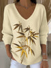 Γυναικείο Vintage μπαμπού φύλλα τέχνη V-λαιμό κορυφαίο