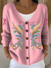 Γυναικείο Vintage Συμμετρική λουλούδια V-λαιμό πλεκτά