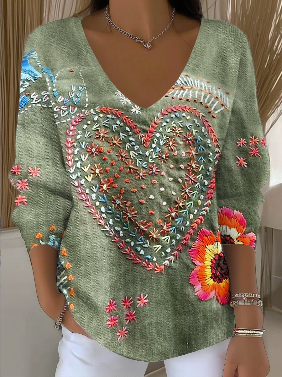 Γυναικείο Vintage Bohemian patchwork Τέχνης V-Neck κορυφαίο