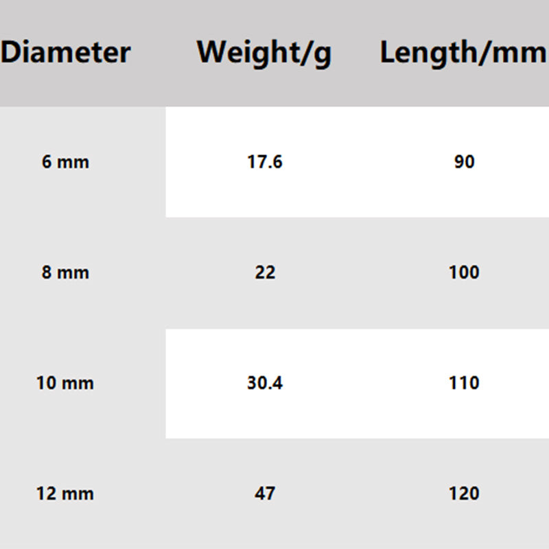 Διάμετρος: 6 mm, 8 mm, 10 mm, 12 mm