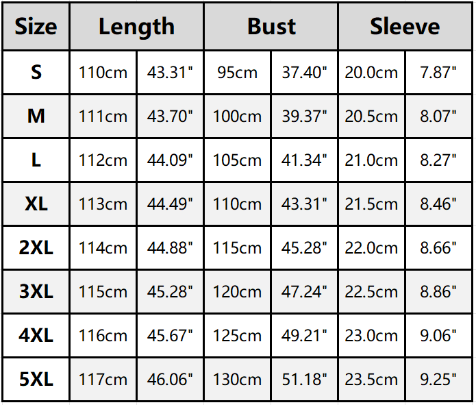 Μέγεθος: S, M, L, XL, 2XL, 3XL, 4XL, 5XL