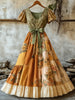 Γυναικείο Retro αγροτική λουλουδιά τυπωμένο V-λαιμό κοντό μανίκι βαμβάκι Maxi φόρεμα βαμβάκι