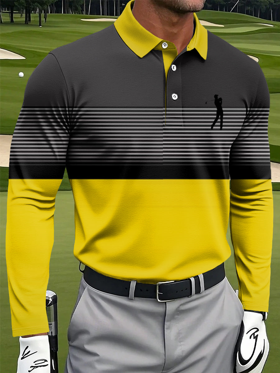 Ανδρική γεωμετρική ριγέ τέχνη εκτύπωση περιστασιακή επιχείρηση μακριά μανίκι Polo πουκάμιση
