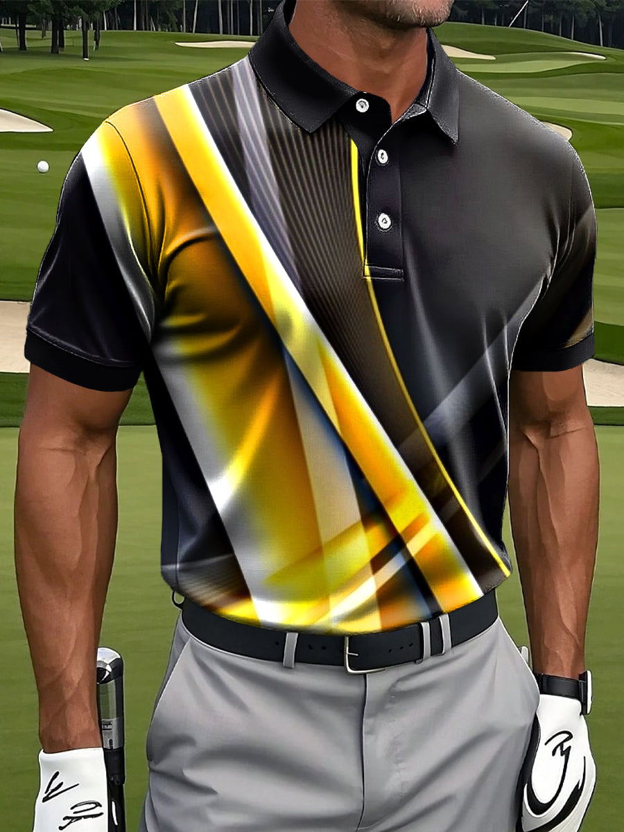 Ανδρική Retro Gradient χρώμα ριγέ καλλιτεχνική εκτύπωση περιστασιακή επιχείρηση Polo πουκάμιση
