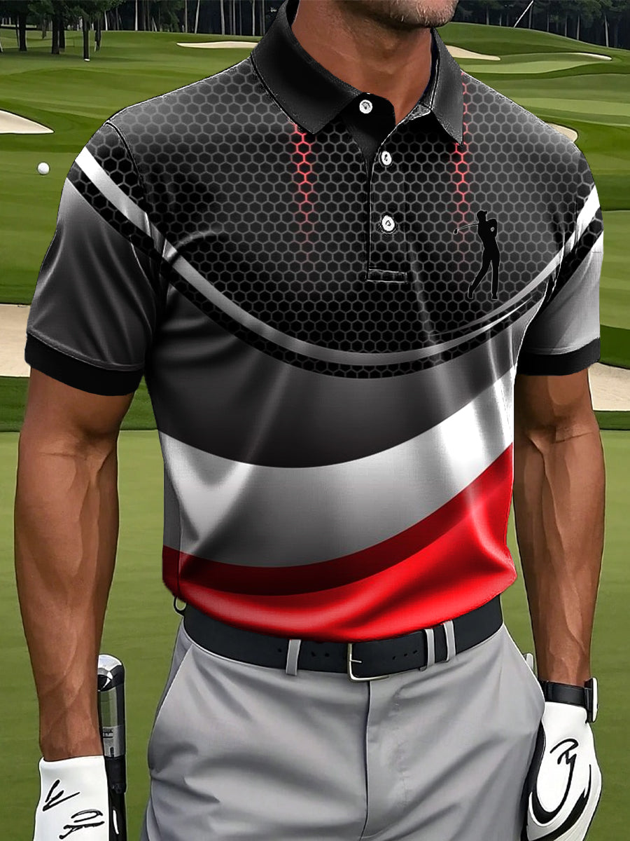 Ανδρικά κύμα γραμμή Patchwork Τέχνης Εκτύπωση περιστασιακή επιχείρηση Polo πουκάμιση