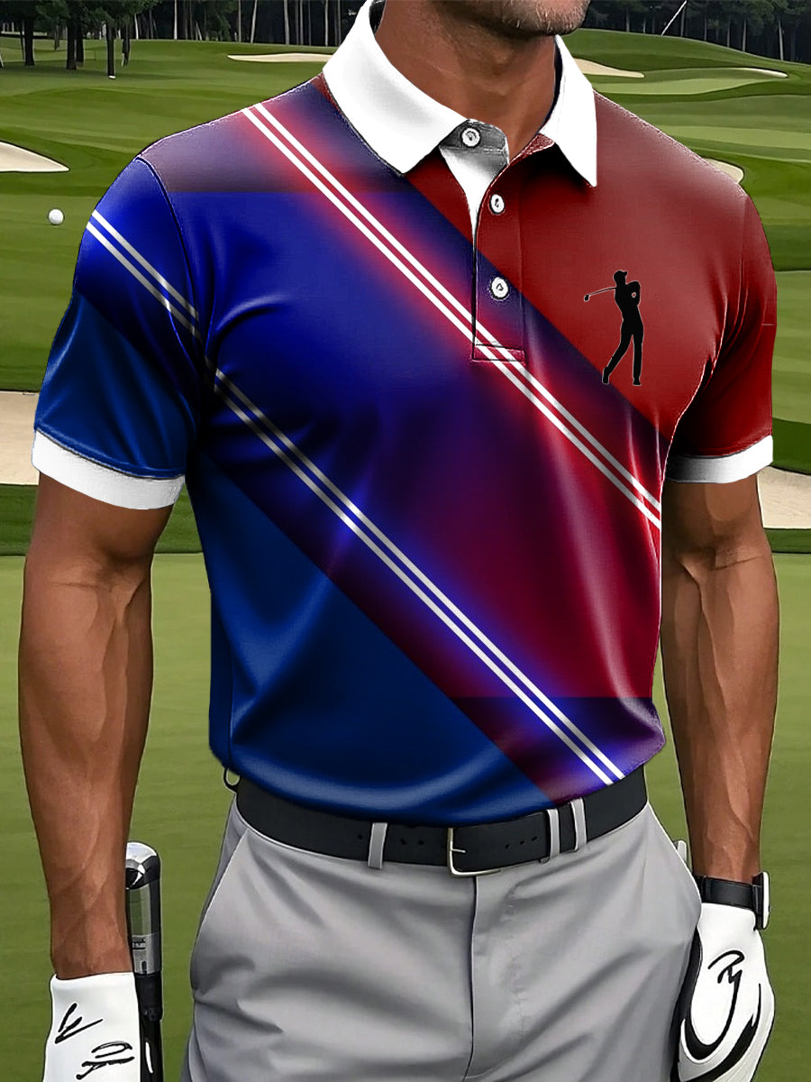 Ανδρικά Retro Gradient πολύχρωμες ρίγες Καλλιτεχνική Εκτύπωση Casual Business Polo πουκάμιση