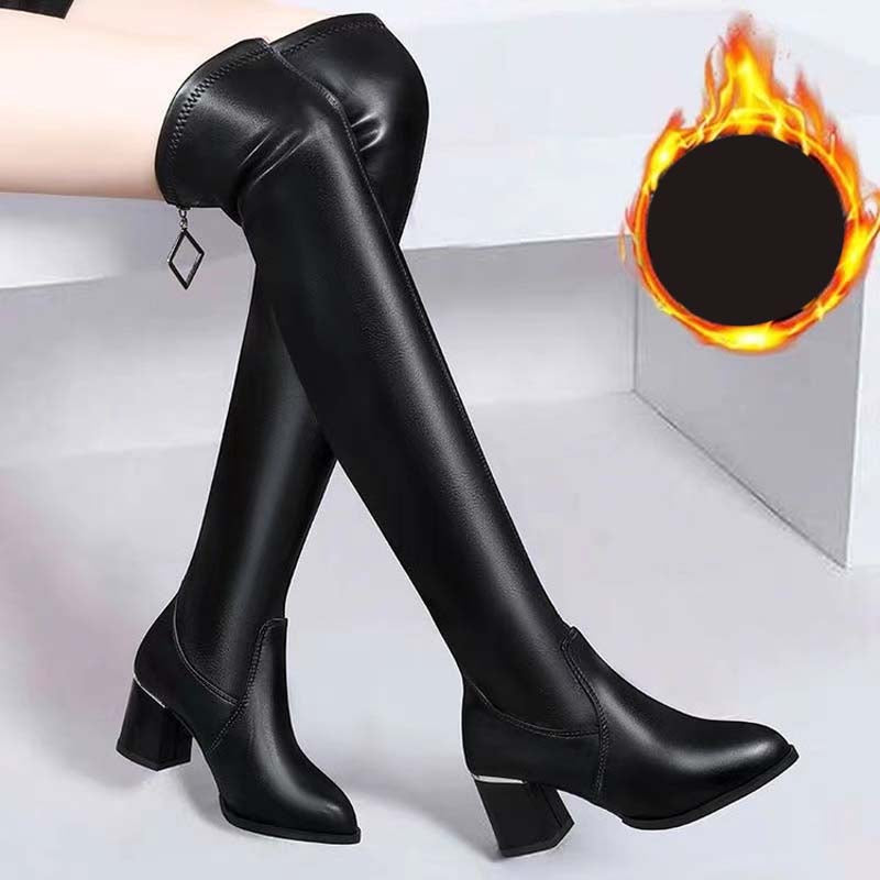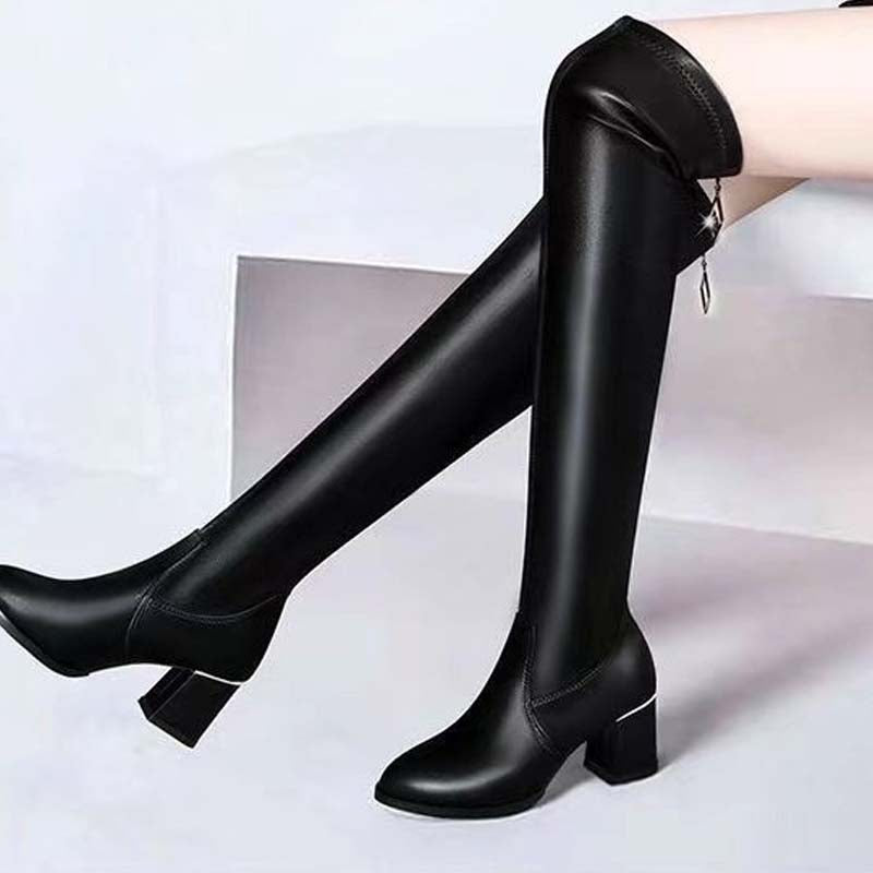 ΑΝΑΒΑΘΜΙΣΤΕ ΤΟ ΣΤΥΛ ΣΑΣ – Βγείτε με αυτοπεποίθηση με αυτές τις κομψές μαύρες μπότες πάνω από το γόνατο με κομψό τακούνι 6 cm. Σχεδιασμένες για να συνδυάζουν μόδα και άνεση, είναι ιδανικές για κάθε περίσταση, προσθέτοντας μια τολμηρή πινελιά στη ντουλάπα σας.