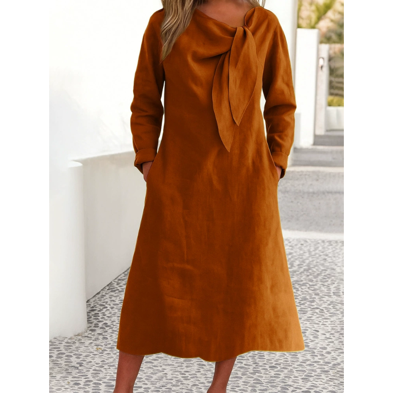 1 * Μονόχρωμο φόρεμα με στρογγυλό λαιμό και μακριά μανίκια
