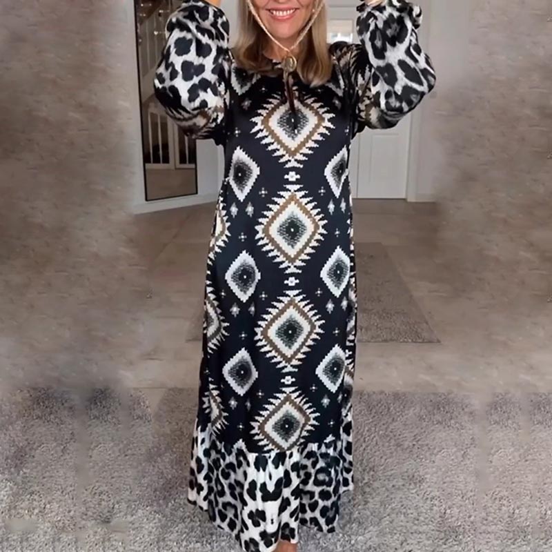 Το πακέτο περιλαμβάνει: 1 * Γυναικείο μποέμ στυλ casual φόρεμα με μακριά μανίκια και τύπωμα