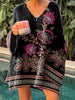Γυναικείο Vintage Ethnic Floral Τέχνη Εκτύπωση V-λαιμόκοκ πουλόβερ