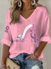 Γυναικείο καρκίνο του μαστού κορδέλα Rhinestone εκτύπωση Casual μακριά μανίκι T-Shirt