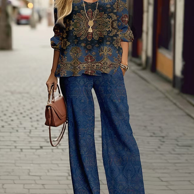 Το πακέτο περιλαμβάνει: 1* Γυναικείο σετ με μαλακό casual μπλουζάκι και φαρδιά παντελόνια